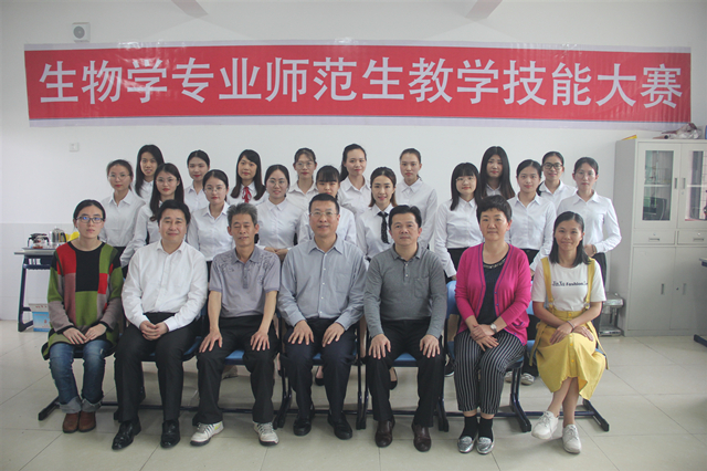 此次大赛要求参赛者选取中学生物教学片段进行教学技能竞赛,其中包括说教设计思路、模拟授课、评委答辩3个环节。经过前期的激烈角逐,共有20名选手成功进入到决赛。在比赛过程中,各参赛选手准备充分,通过精美的PPT和精致的教具模型等多种直观的形式,解说各自的教学思路,模拟课堂的风采。答辩环节,评委们通过对参赛选手提出问题的方式,考验选手的应变能力。最后对每位参赛选手的模拟授课做出专业的分析与点评,并给出了可行的指导意见。最终,1601班谢艳雯和1601班周颖娉获得了此次大赛的一等奖。
