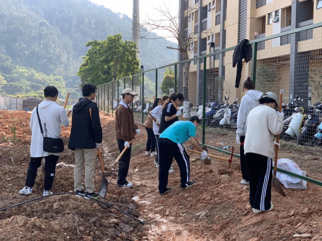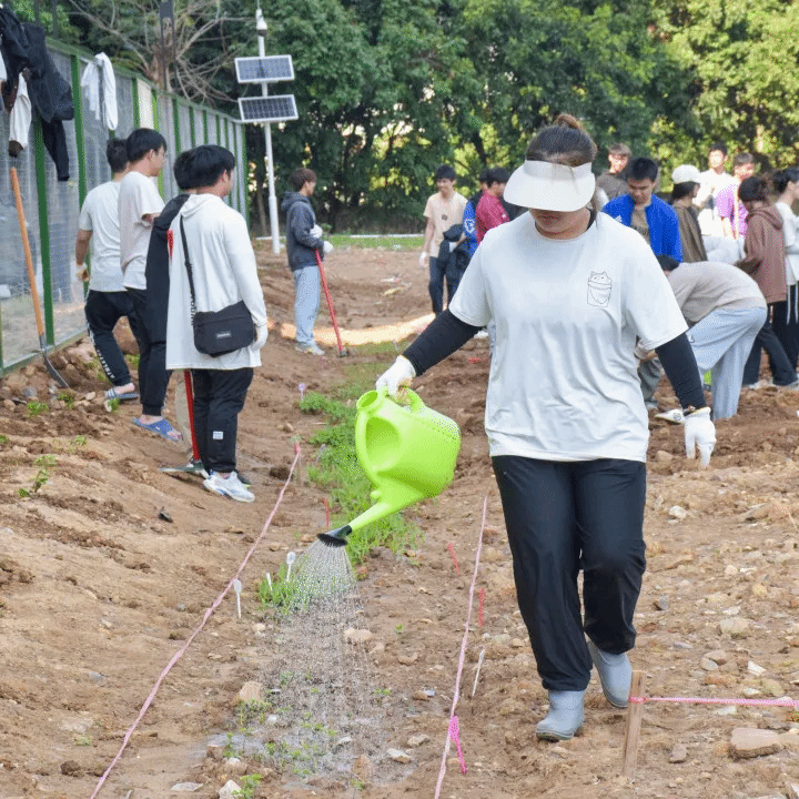 经过园艺系师生们的绿色接力,基地里新栽的数百株新苗迎风舒展。这场融合劳动教育、专业见习与生态建设的实践,不仅让“园艺植物栽培学”知识跃出课本,更以“班级责任田”形式建立长效管护机制,为绿美嘉园建设注入青春动能。