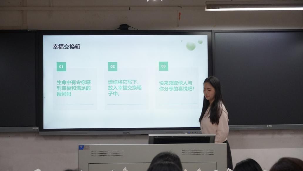 12月8日在田师517室开展“‘定格让幸福具象化’——幸福交换箱”活动,通过鼓励参与者写下自己生活中的幸福时刻,并将这些记录放入共享的箱子中。参与者随机抽取他人分享的幸福片段进行阅读,从而感受到幸福的传递和共鸣。