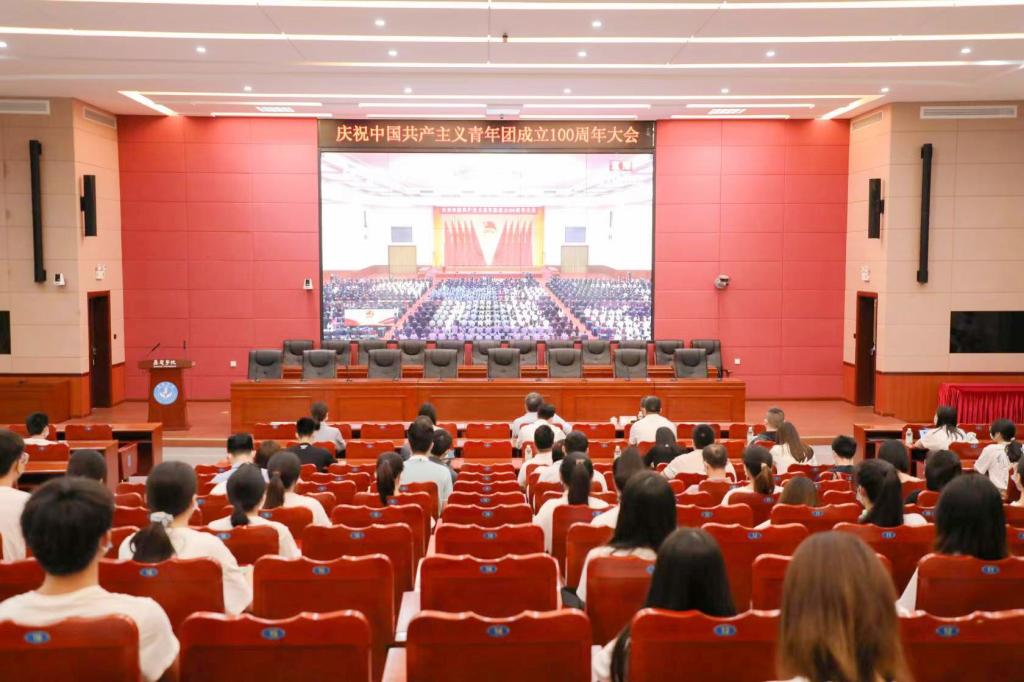 5月10日上午,庆祝中国共产主义青年团成立100周年大会在北京人民大会堂隆重举行。中共中央总书记、国家主席、中央军委主席习近平出席大会并发表重要讲话。学校党委书记吴琦,副校长张丽霞,校团委负责人,团委专兼职团干、二级学院团委书记、团学骨干代表、学校2022年“五四”表彰获奖者代表、“青马工程”学员代表近120人在百年纪念大楼121室一同收看会议直播,共同聆听习近平总书记在大会上发表的重要讲话。