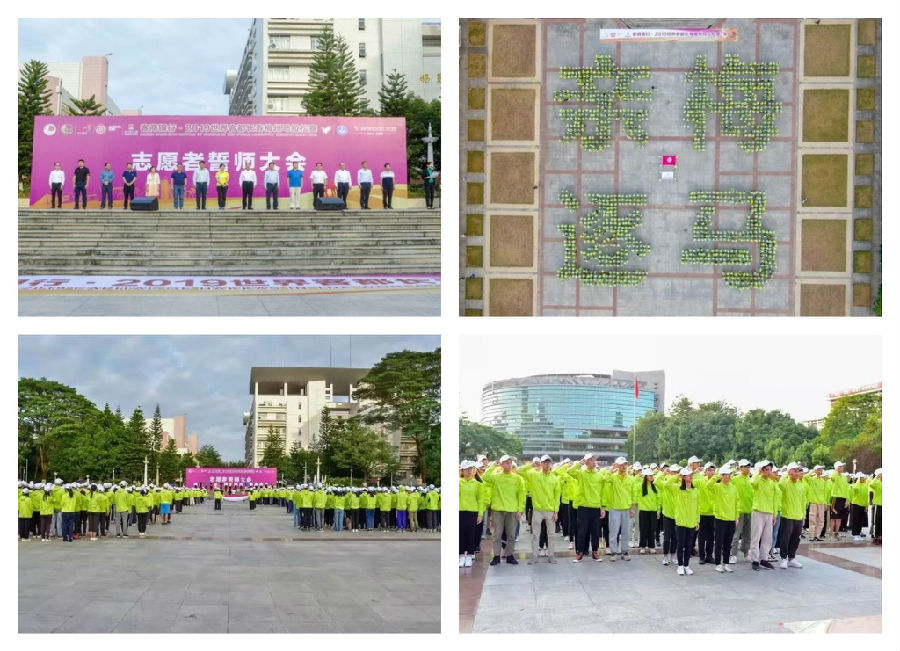 为弘扬“奉献、友爱、互助、进步”的志愿者服务精神,进一步做好2019梅州马拉松赛志愿服务工作,展示志愿者良好的精神面貌,提升志愿者服务水平和整体素质。2019年10月27号下午,“客商银行·2019世界客都长寿梅州马拉松赛”志愿者誓师大会在我校世纪广场举行,2000多名志愿者参加了大会并进行宣誓。