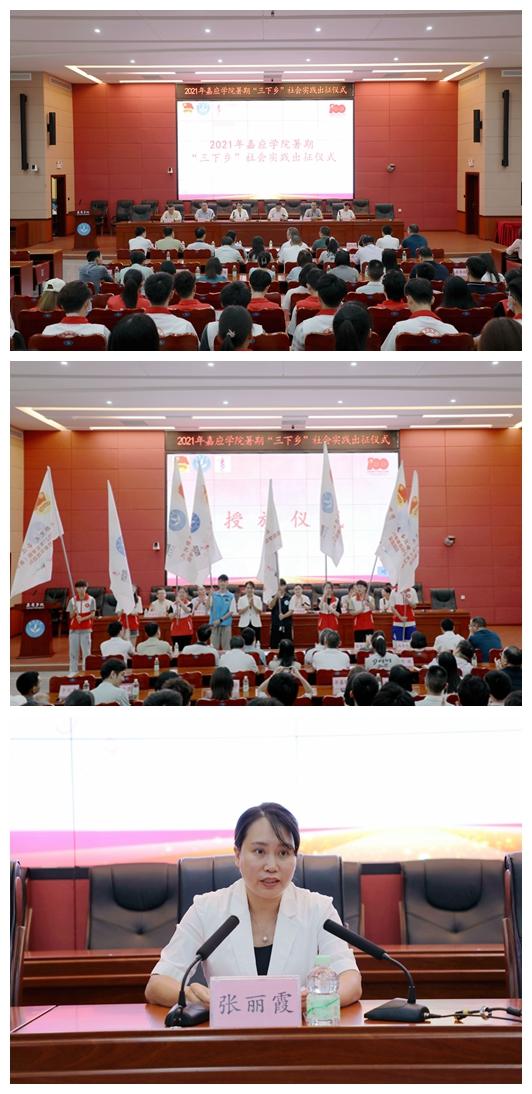 7月6日下午,以“永远跟党走,奋进新时代”为主题的2021年嘉应学院暑期“三下乡”社会实践活动出征仪式在百年纪念大楼121举行。学校副校长张丽霞出席出征仪式并授旗和讲话,学生工作部、教务处、校团委、各二级学院相关负责人以及社会实践团队指导老师,学校“青马工程”基层实践服务队、援藏社会实践团队、校级灯塔实践团队等学生代表共200余人参加了出征仪式 。