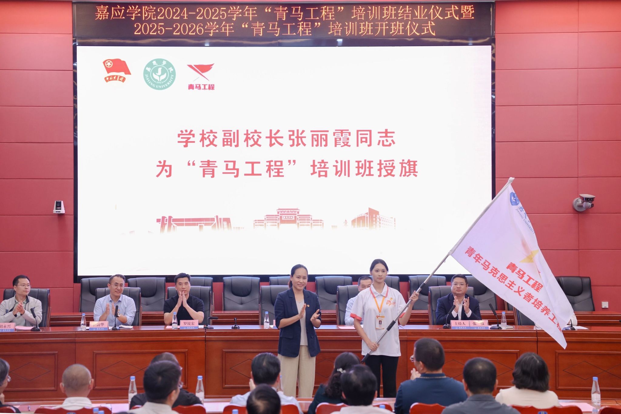 10月29日,我校在百年纪念大楼121室举行2024—2025学年“青马工程”培训班结业仪式暨2025—2026学年“青马工程”培训班开班仪式。学校副校长张丽霞,组织部、宣传部、学生工作部、马克思主义学院、团委等单位负责人,各二级学院党委书记(副书记),校团委专职团干,各二级学院团委书记,青马学员代表共200人参加了会议。会议由校团委负责人张敏主持。