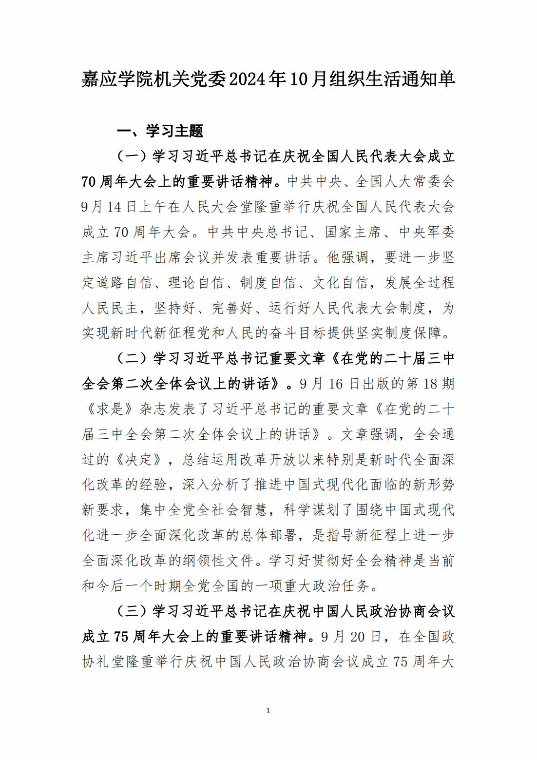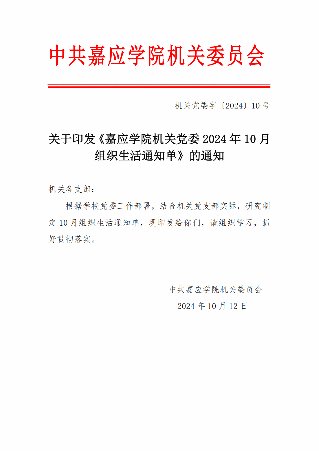 关于嘉应学院2024年10月组织生活通知单的通知