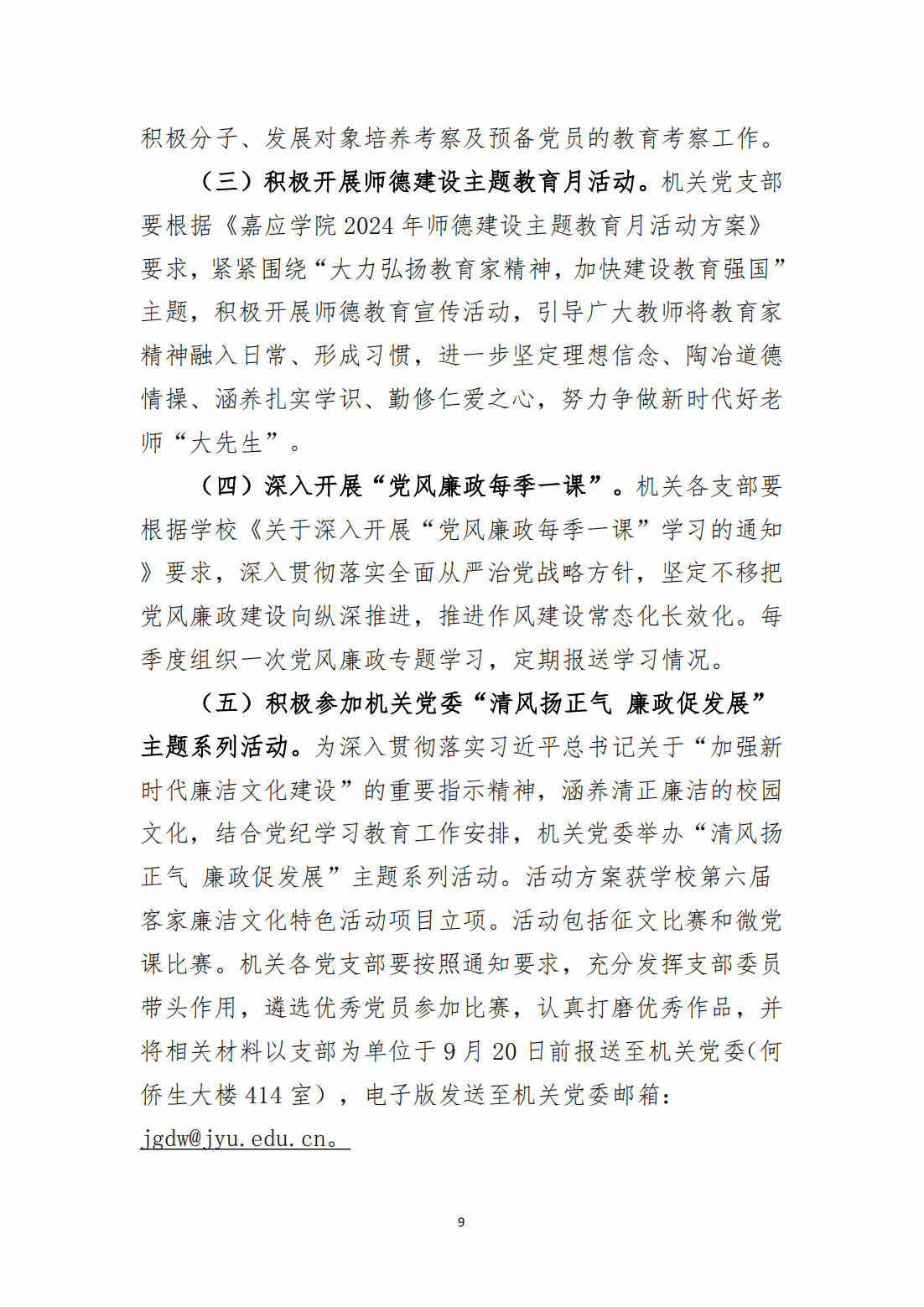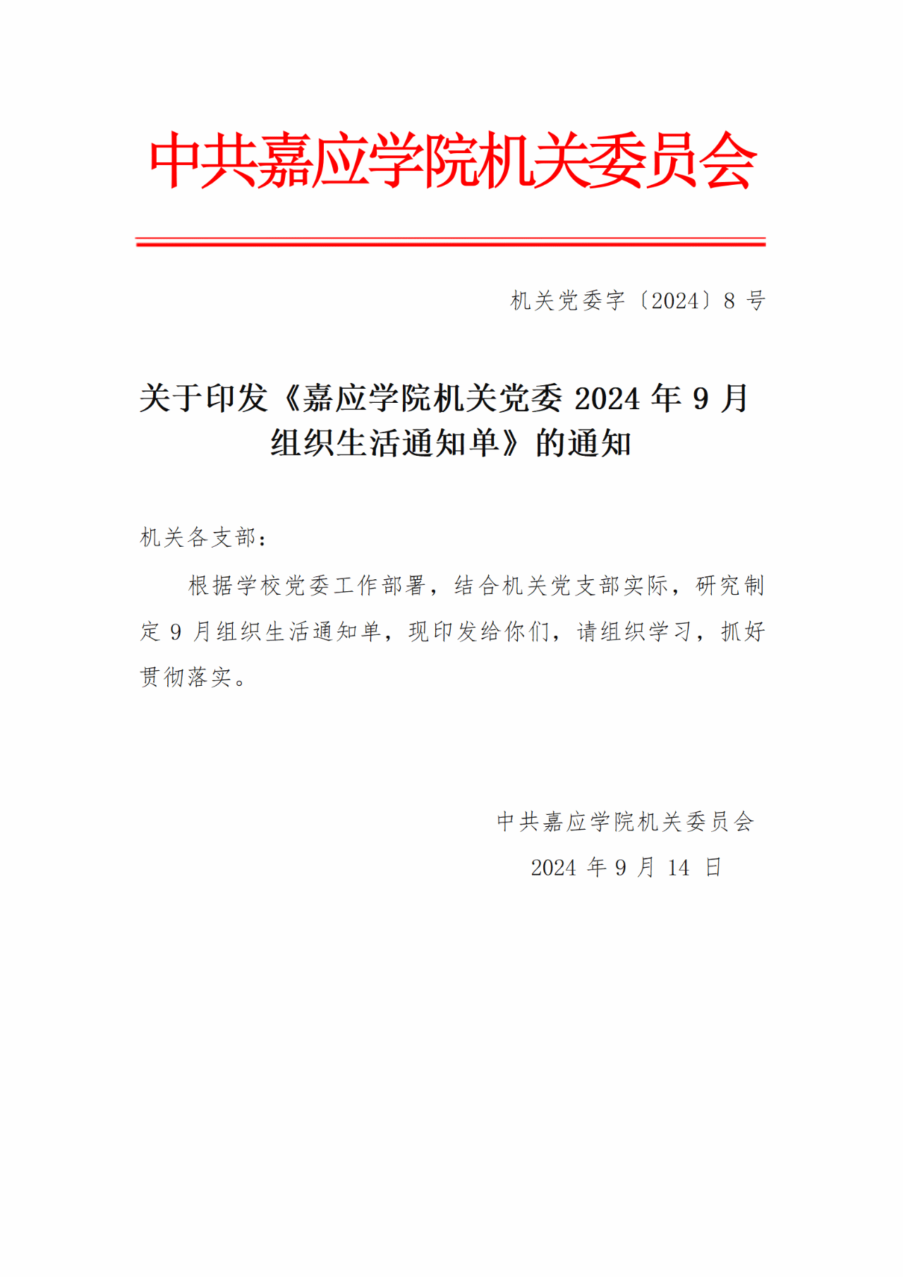 关于嘉应学院2024年9月组织生活通知单的通知